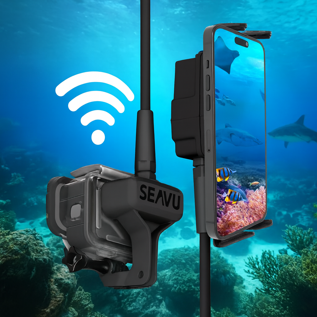 任何尝试过在水下将 GoPro 或 DJI 运动相机连接到 Quik 或 Mimo 应用的人都知道那种挫败感。Wi-Fi 信号无法穿透水,所以一旦相机浸入水中,连接就会断开。