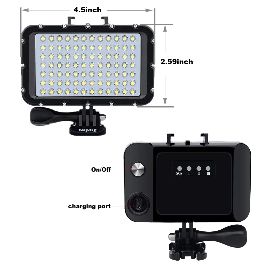 这款灯与 Seavu Seeker 及其配件兼容,配有 GoPro 风格的上下安装座,可让您将其安装在 Seeker 下方并连接其他配件,例如 导引头重量.