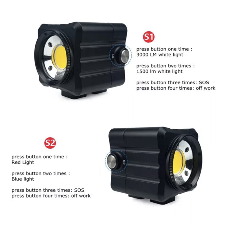 每盏灯都配备可调节支架,方便您精确控制角度和位置,从而在拍摄场景中实现均衡均匀的照明。五种照明模式(白光、红光、蓝光、闪光、SOS)可轻松适应不同的水下环境和拍摄目的。