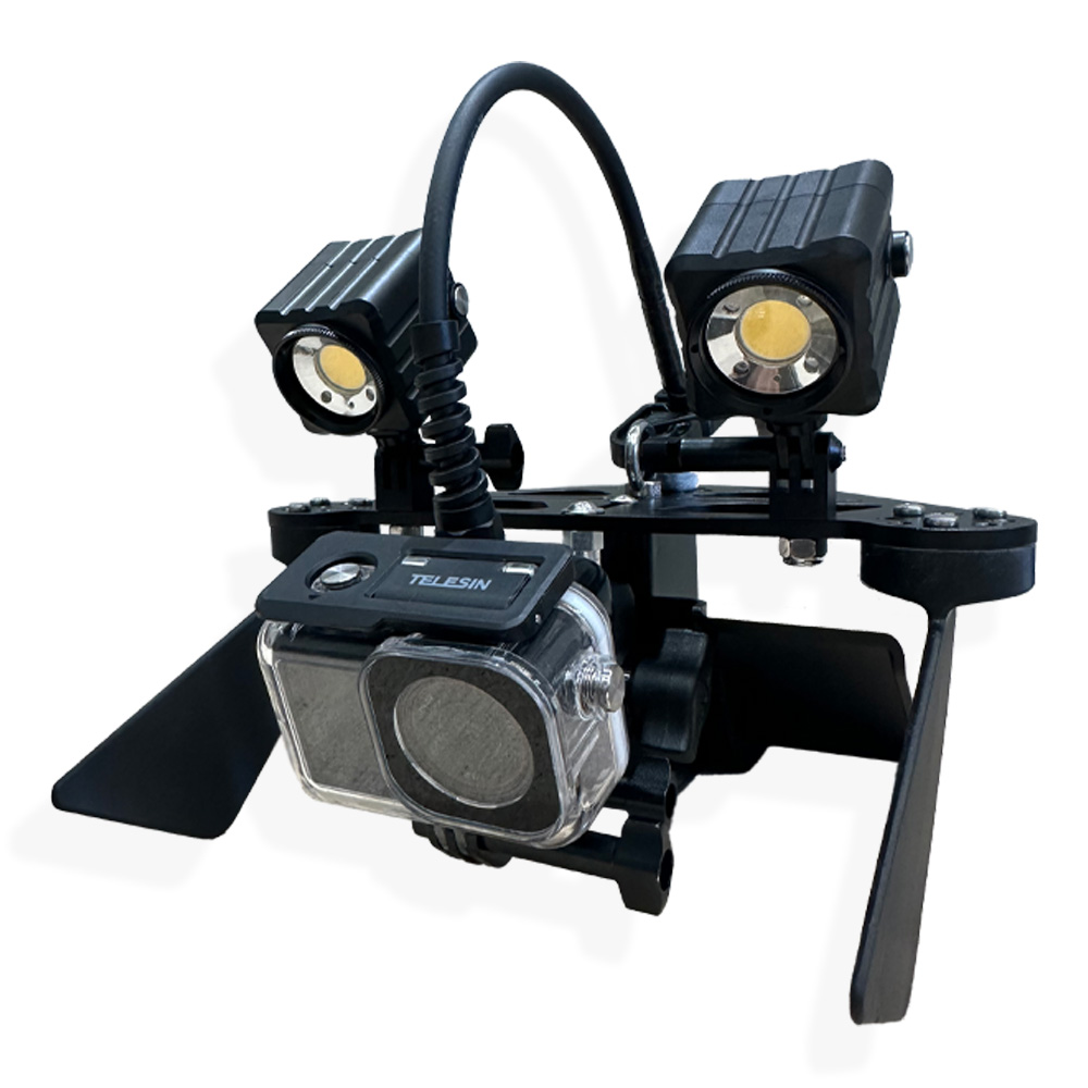 一对3000流明的灯(总共6000流明),适用于DeepScope Rig和其他Seeker设备。可直接安装在设备上,或使用安装臂安装在杆子、鳍片或定制设备上。