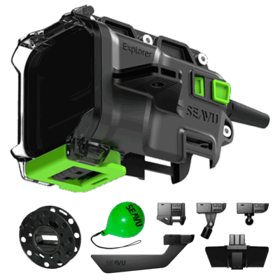 Explorer+探险套装配备可靠的HDMI输出、坚固耐用的深潜电缆和功能齐全的配件系统,可为各种水上活动提供稳定、清晰、实时的水下观看体验。