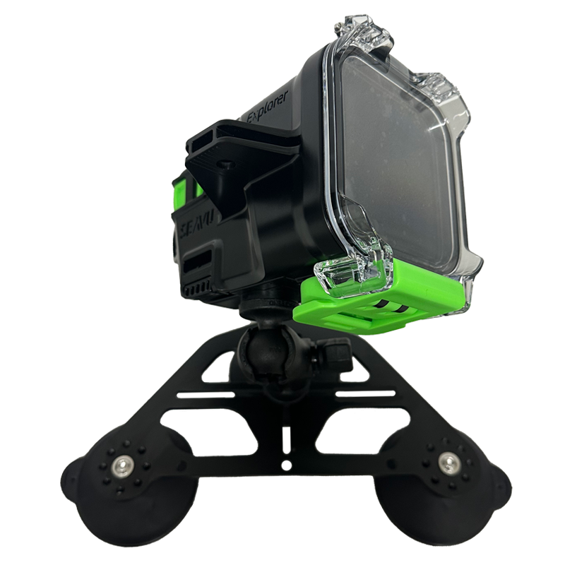 三重吸盘底座,可全方位调节角度。无论在水下粗糙还是光滑的表面,都能轻松吸附。