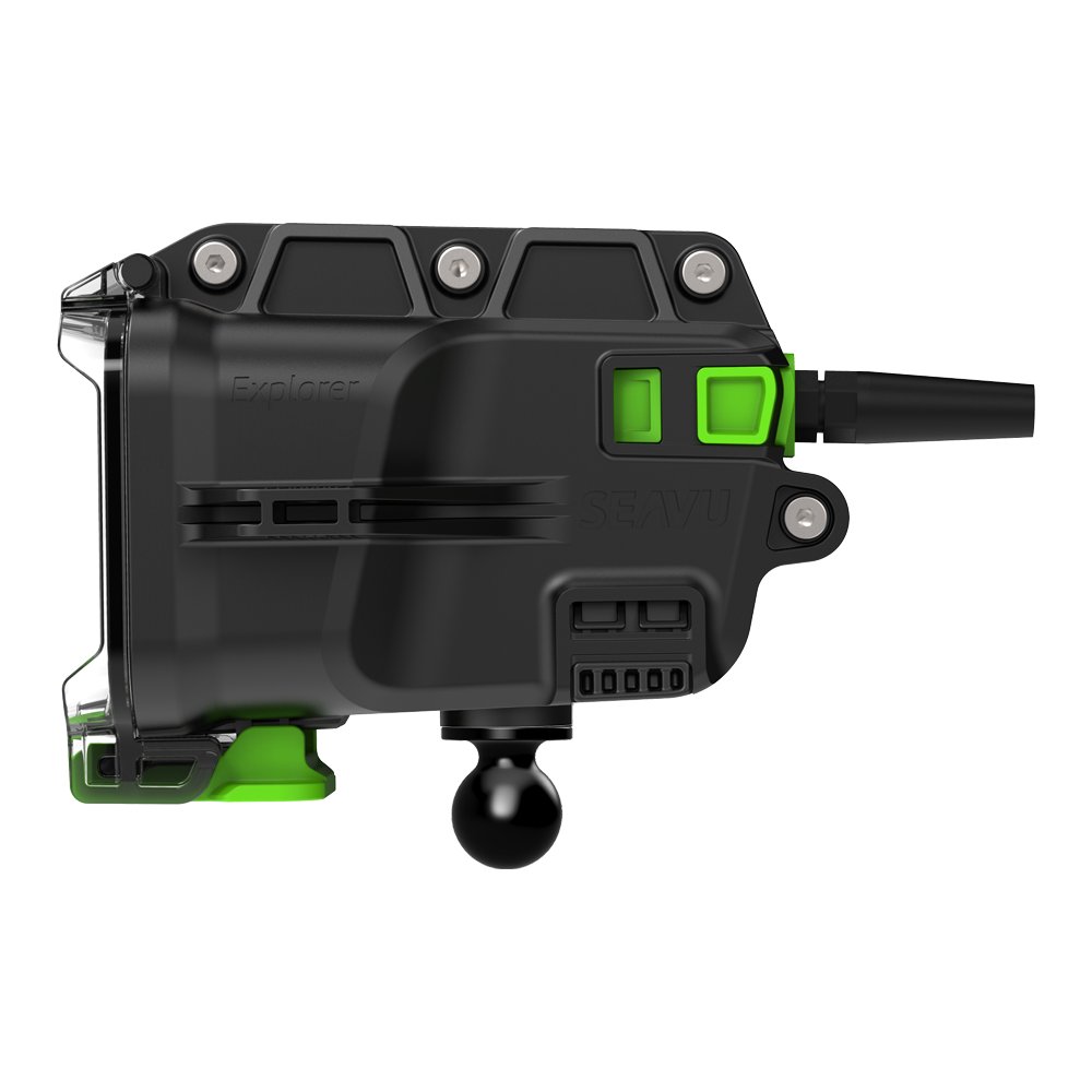 • 通用安装选项:将您的 Seavu Explorer 连接至几乎任何表面,以获得稳定、多功能的镜头。